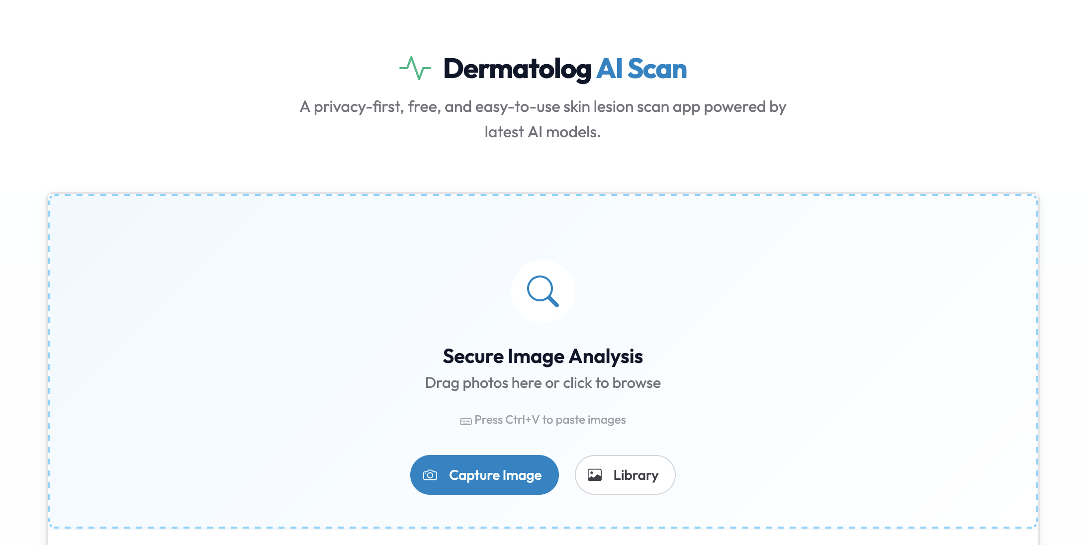The Dermatolog AI Scan application offers a solution to these challenges by implementing a lesion scanner that assesses tumor risk while ensuring user privacy. The application utilizes the newest MedGemma AI model family, specifically MedSigLIP for image classification, and stores absolutely zero user data on the server.